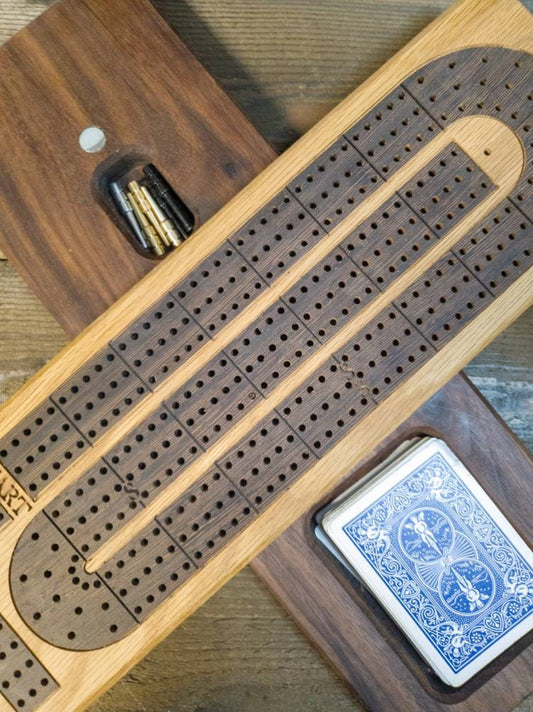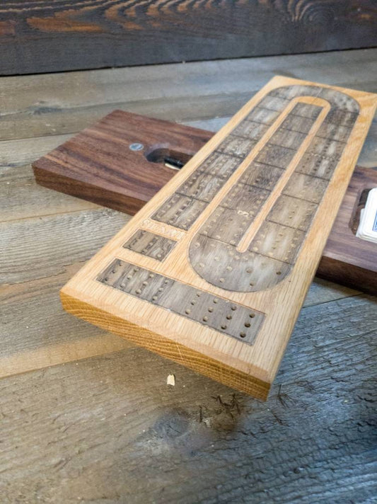 White Oak w/ Wenge Inlay Cribbage Board