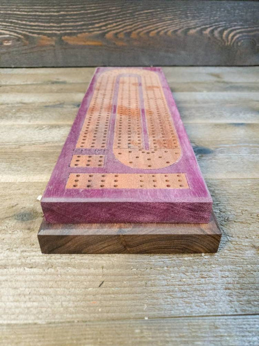 Purpleheart w/ Sapelle Inlay Cribbage Board
